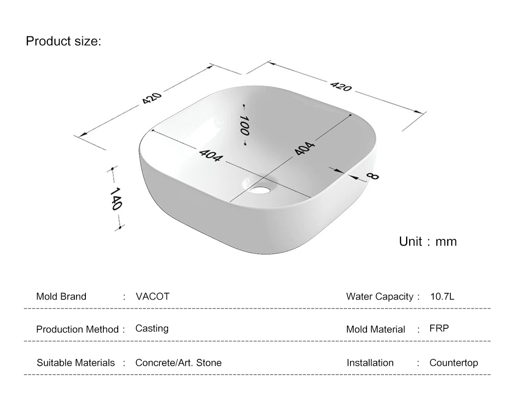 Casting Mold for Moon-shaped Countertop Sink
