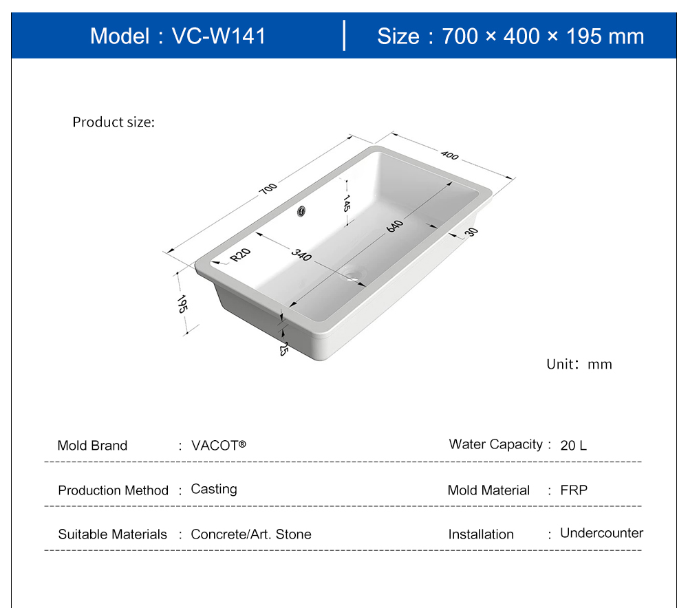Casting Mold for Square Rounded-Corner Undermount Sink