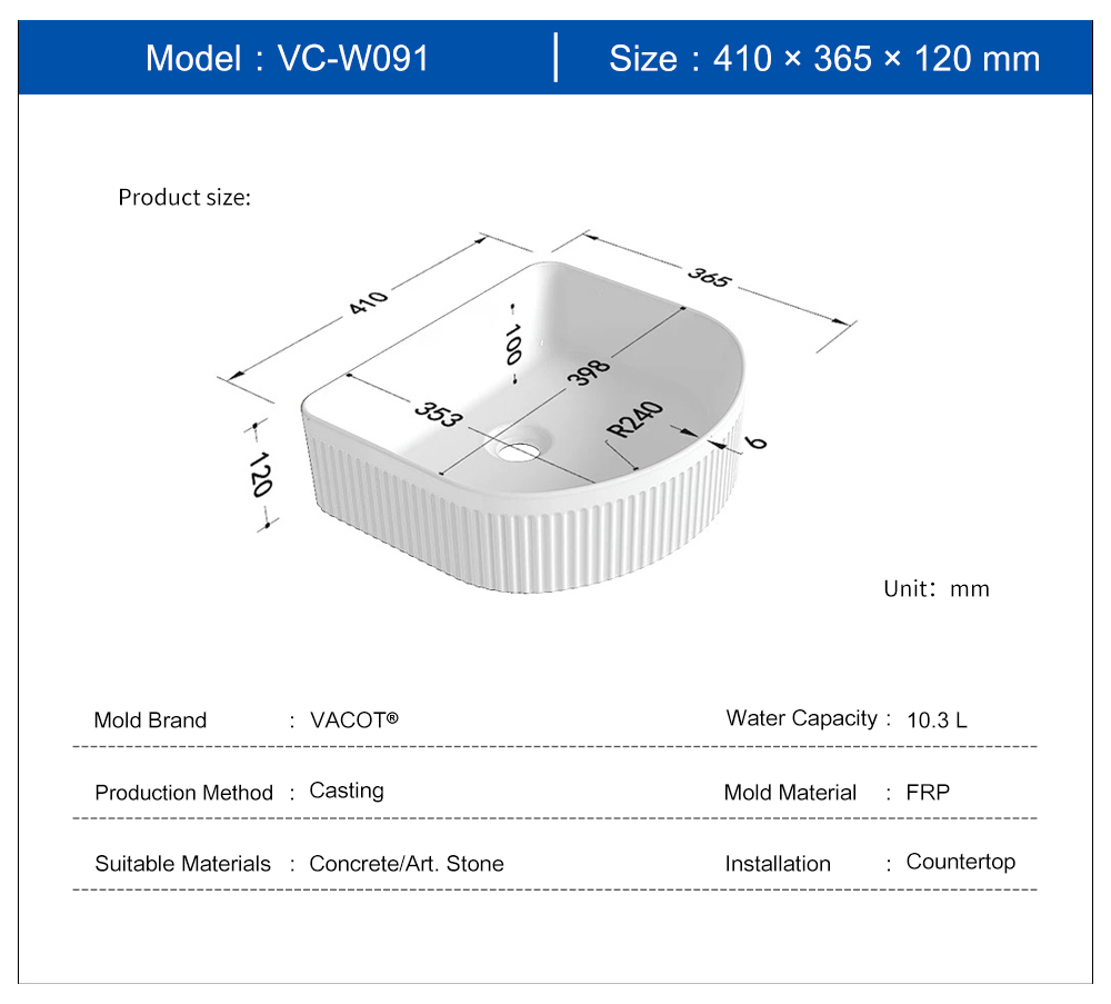 Casting Mold for Fan-shaped Stripes Countertop Sink