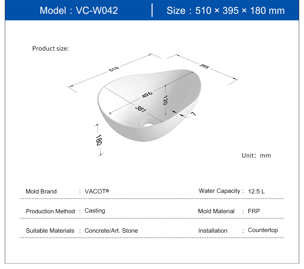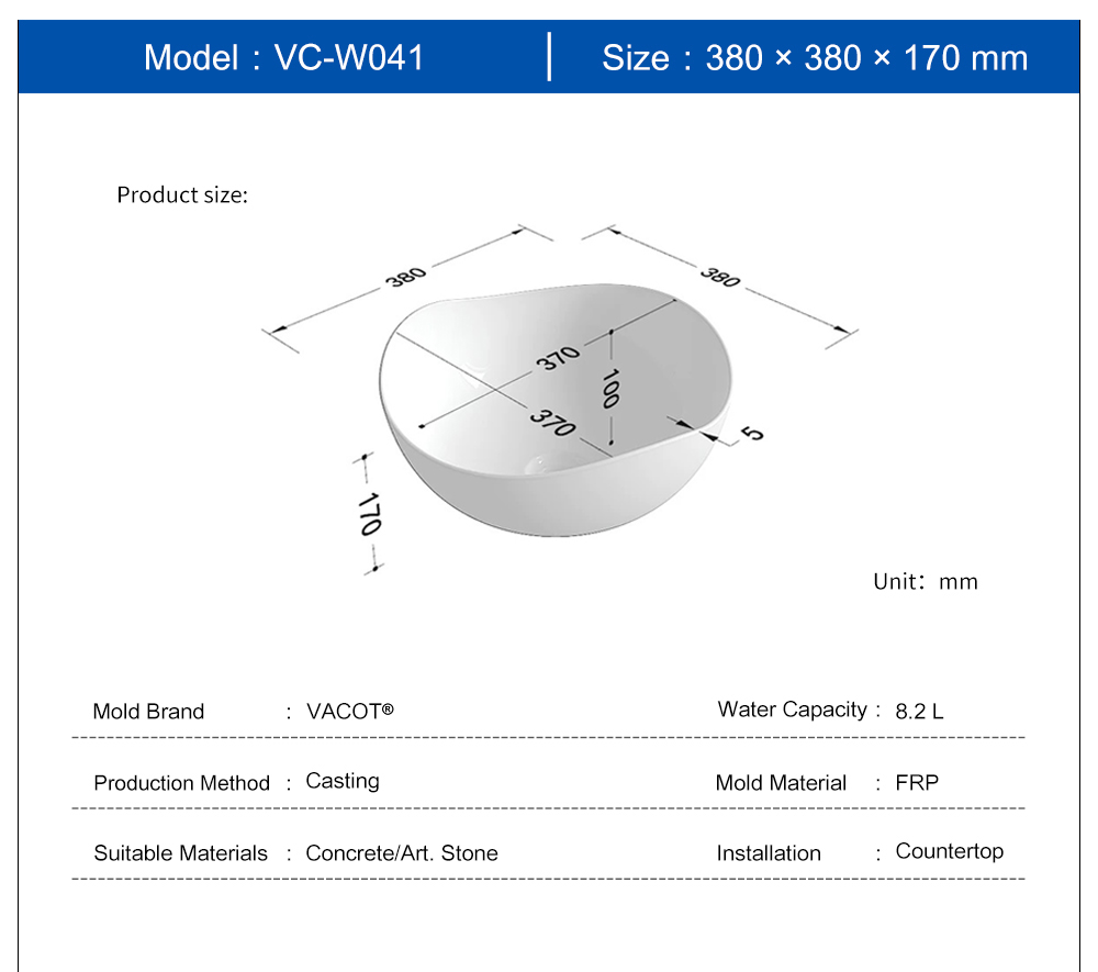 Casting Mold for Oval Countertop Sink