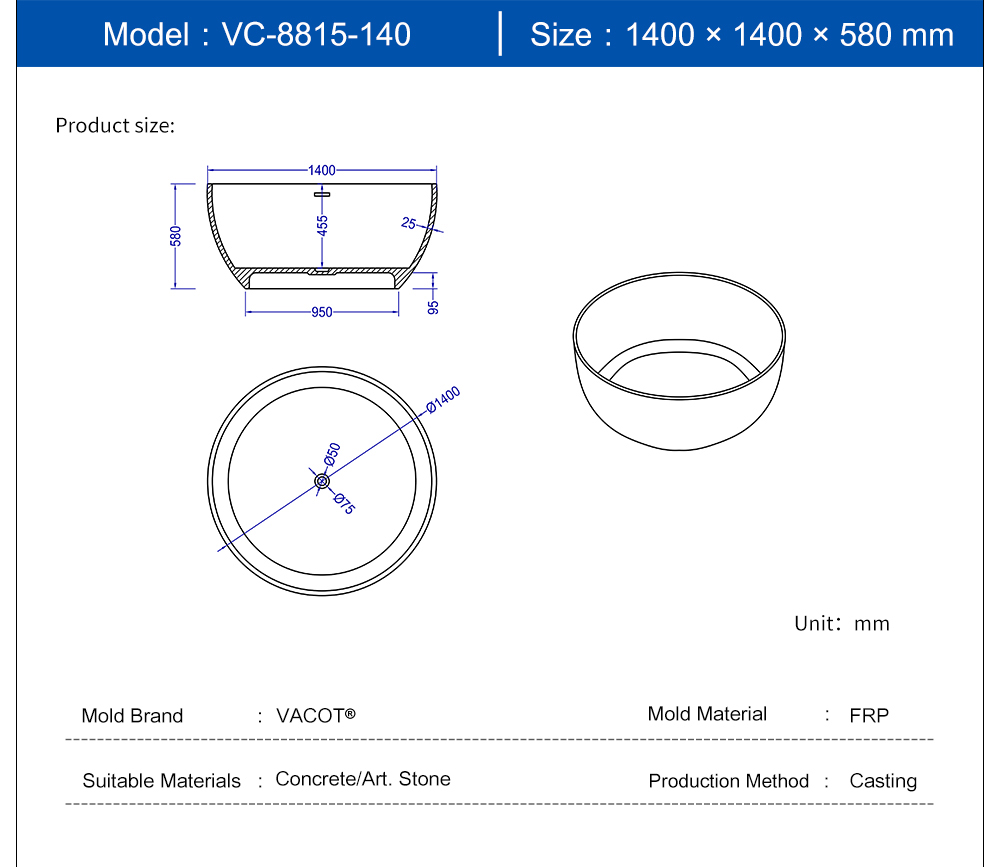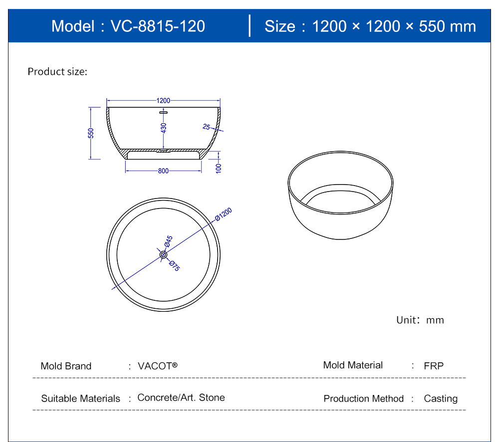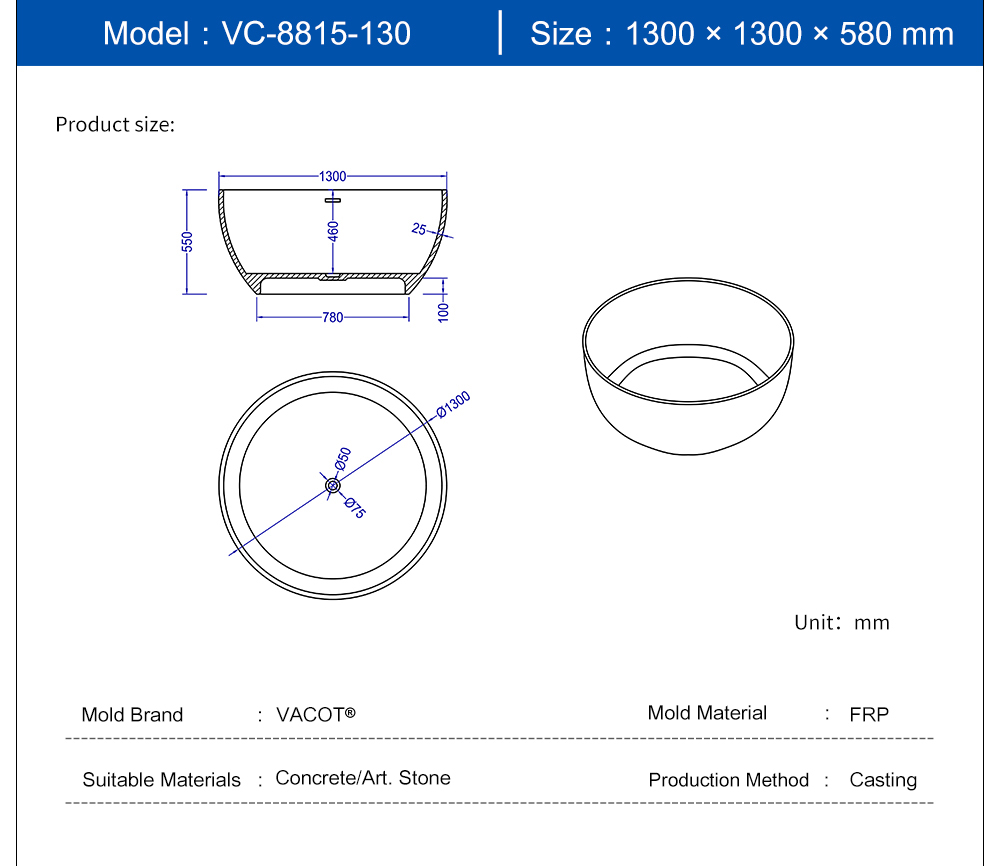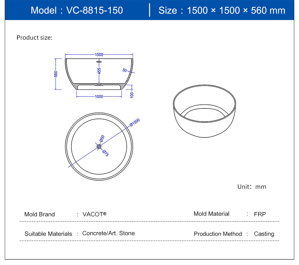 Casting Mold for Round Bathtub VC-8815