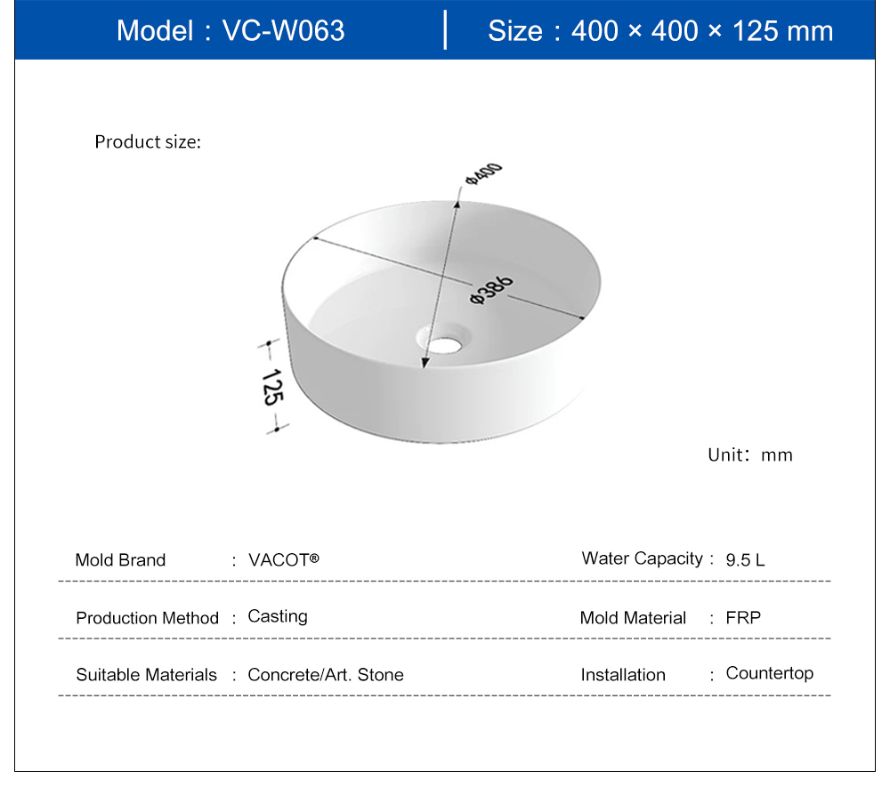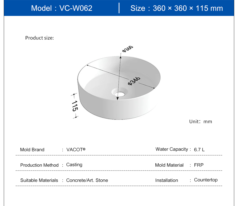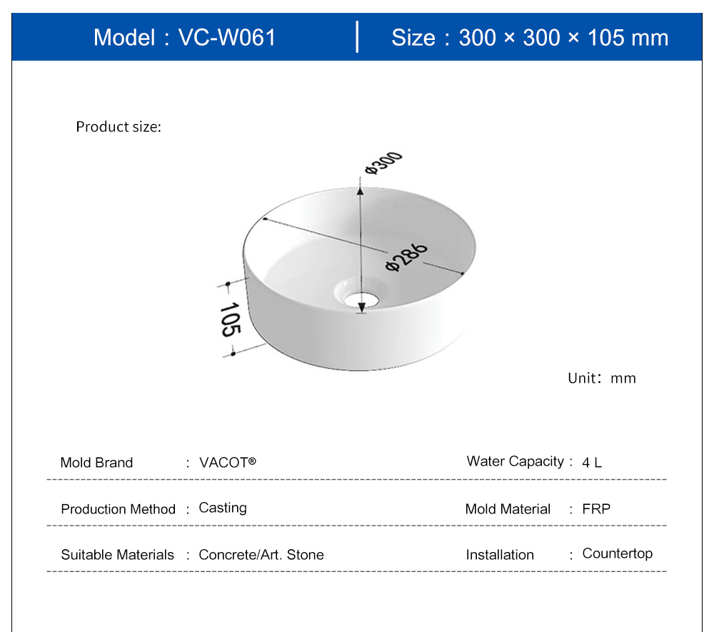 Casting Mold for Round Countertop Sink