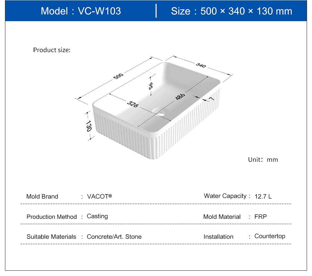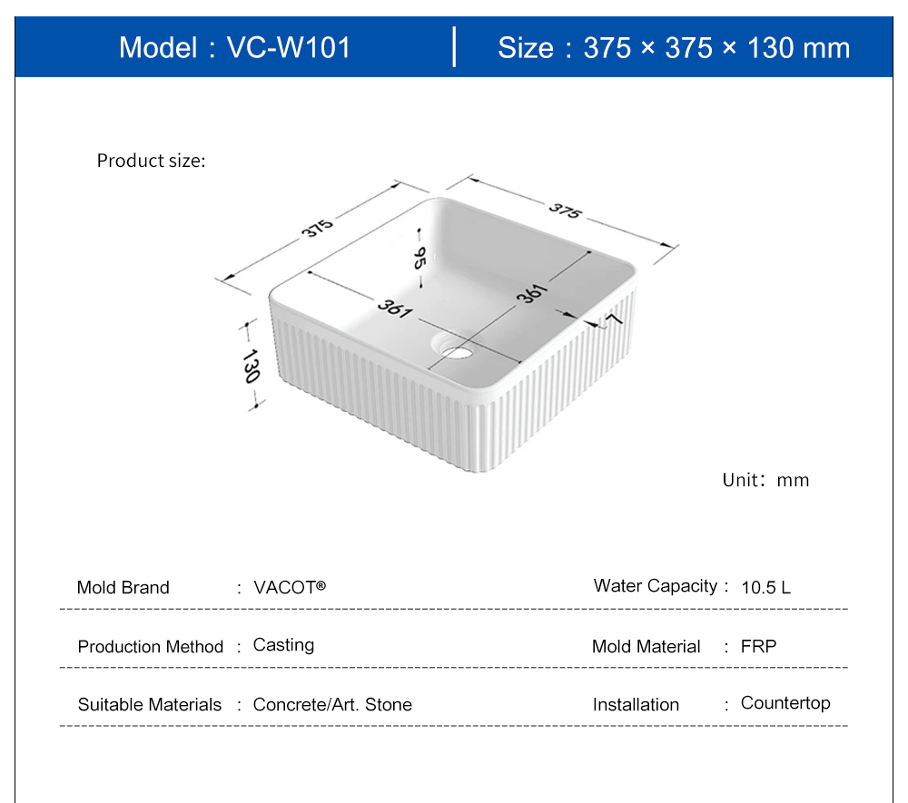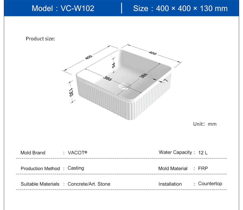 Casting Mold for Square Stripes Countertop Sink